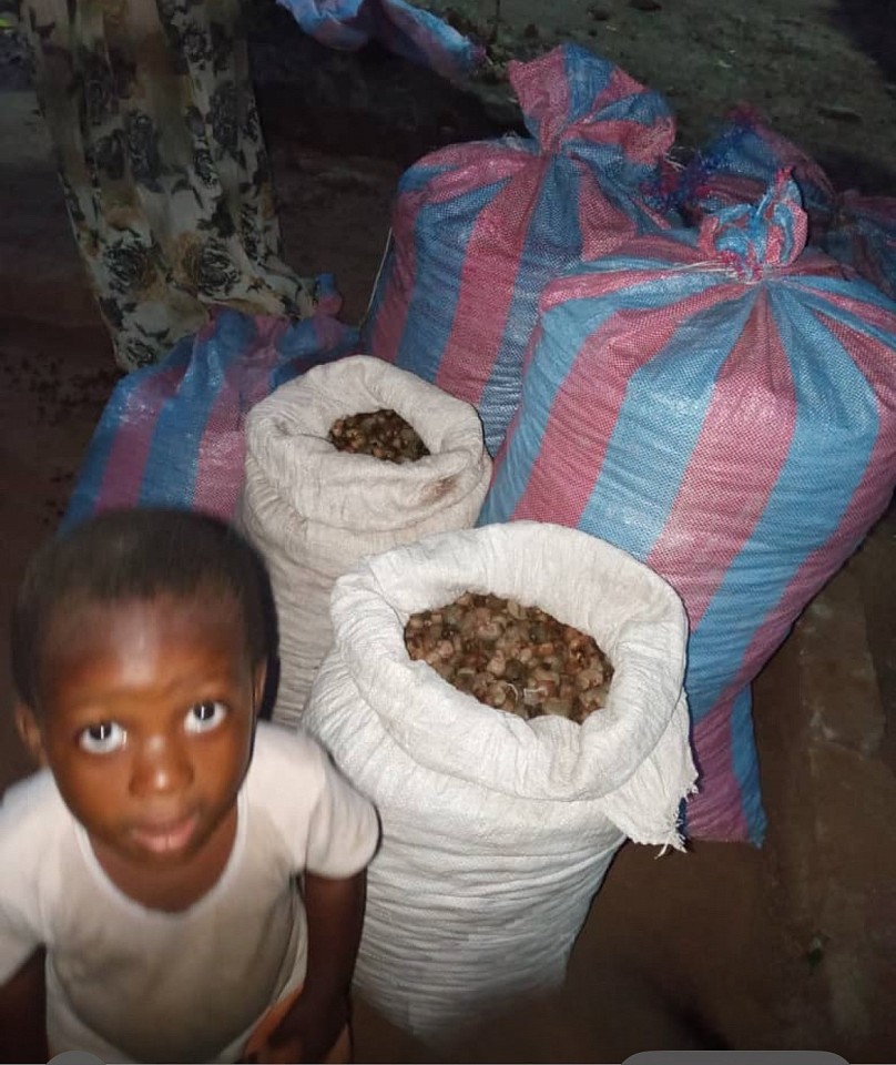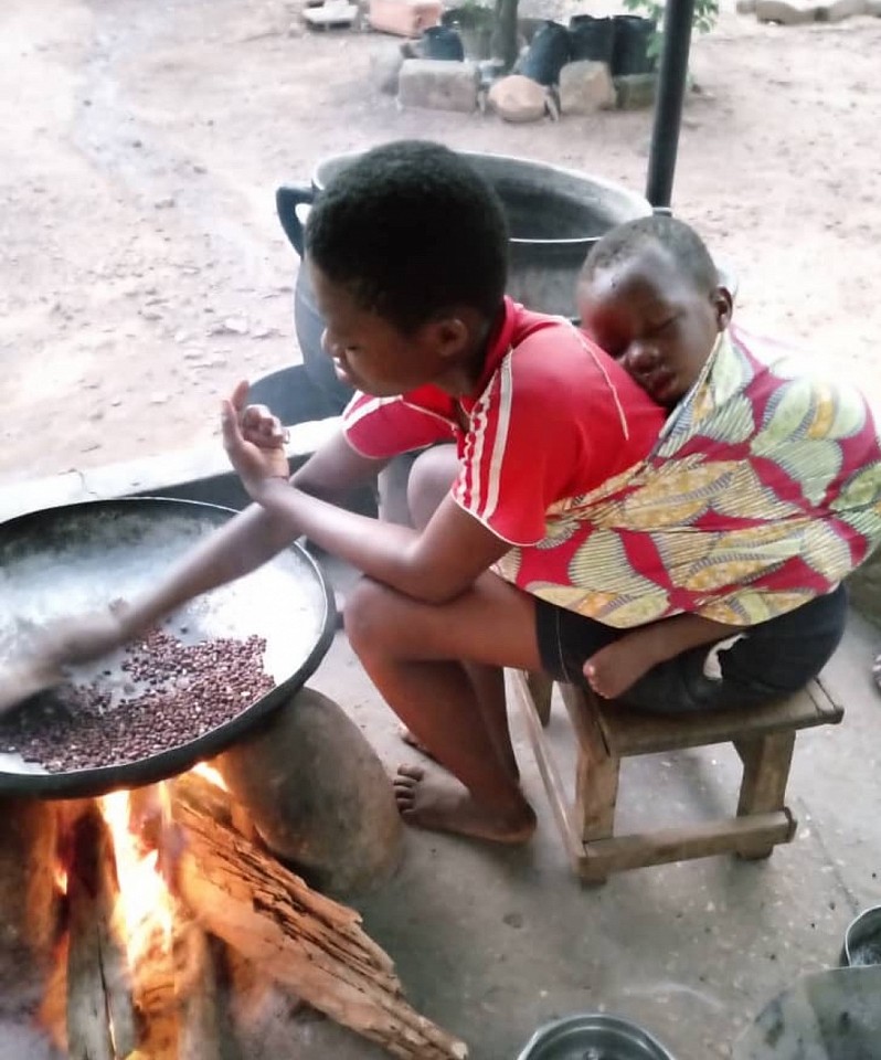 Noel riposa tranquillo, mentre si procede alla tostatura degli anacardi